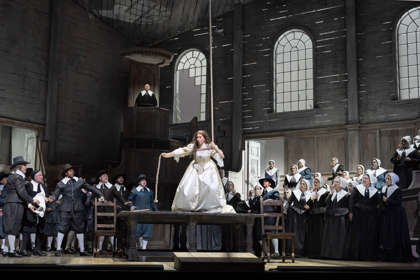 Jen málokteré operní dílo se vyrovná Belliniho Puritánům tolika krásnými melodiemi, dechberoucí koloraturou a virtuozní pěveckou akrobacií. 10. ledna uvidí diváctvo po celém světě přímý přenos Belliniho posledního mistrovského díla v novém nastudování Metropolitní opery po téměř padesáti letech. Uznávaný scénograf Charles Edwards s touto inscenací debutuje v silném a přesvědčivém gestu na poli operní režie. Pod vedením dirigenta Marca Armiliata se na jevišti Metropolitní opery sejdou čtyři vynikající pěvci a pěvkyně: sopranistka Lisette Oropesa a tenorista Lawrence Brownlee ztvární Elviru a Artura, milence jimž brání v lásce politické konflikty a rozbroje anglické občanské války, barytonista Artur Ruciński bude zpívat Ricarda, jenž je s Elvírou zasnouben proti její vůli, a basbarytonista Christian Van Horn se představí v roli Elviřina chápavého strýčka Giorgia.